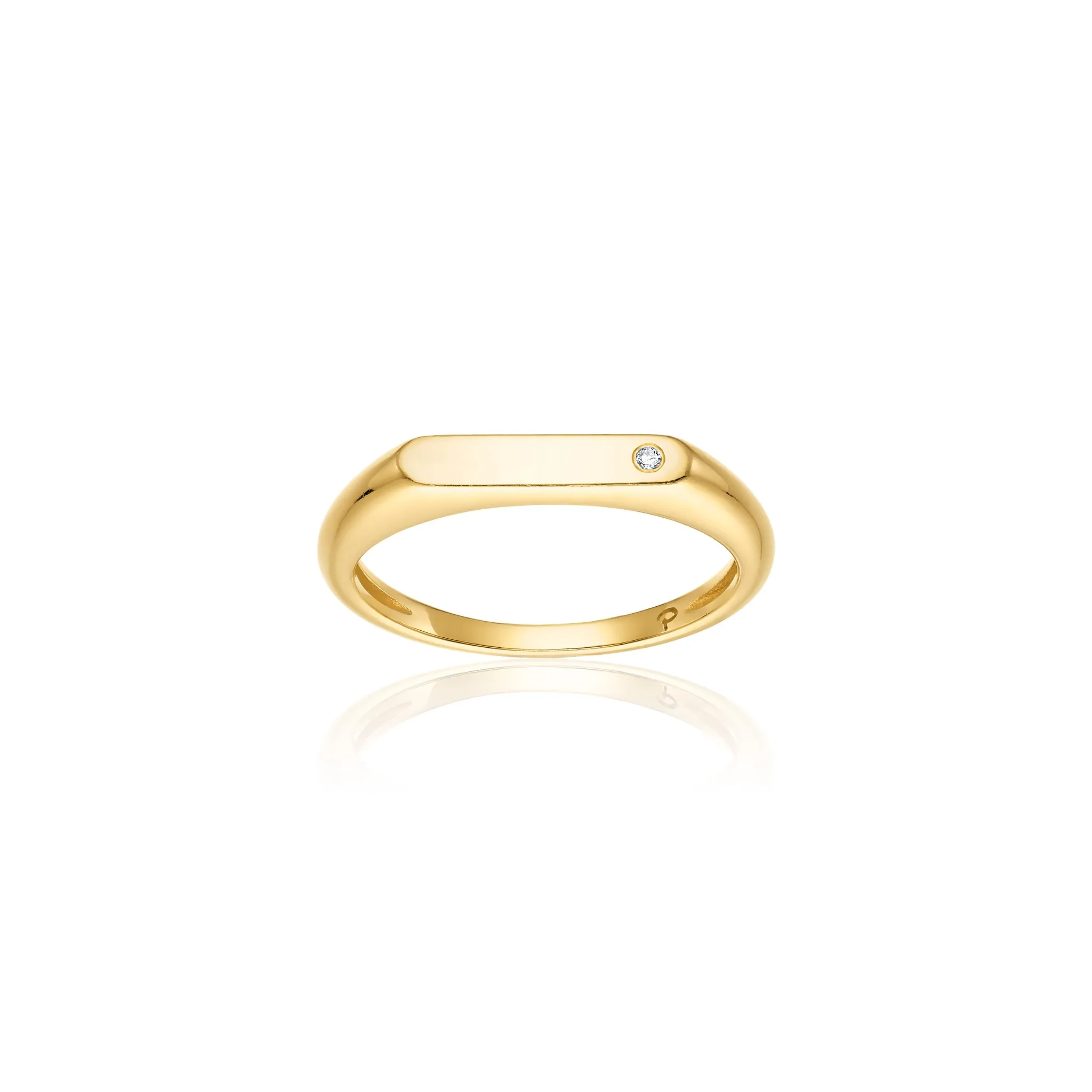 A modern parallel ring crafted in 14k gold, beautifully accented with a single white diamond. Its clean lines and radiant sparkle make it a timeless piece for everyday elegance or special occasions. Perfect for personalization with engraving.